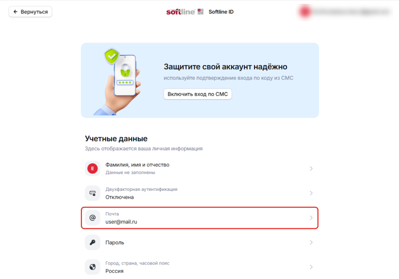 - Откройте свой профиль: https://login.softline.com/profile и если требуется, то пройдите авторизацию.